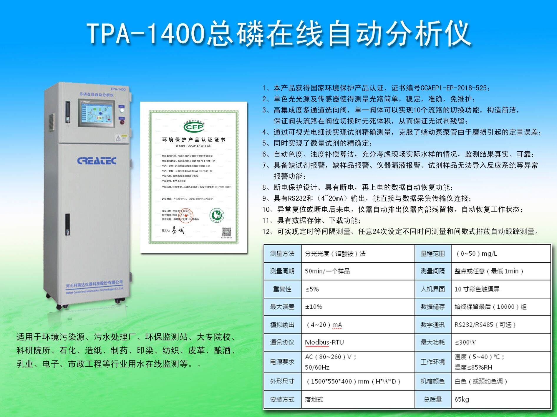 公司专业提供COD,氨氮,总磷,总氮自动检测仪等,产品质量好、价格实惠、远销国内外,咨询电话:13802394900