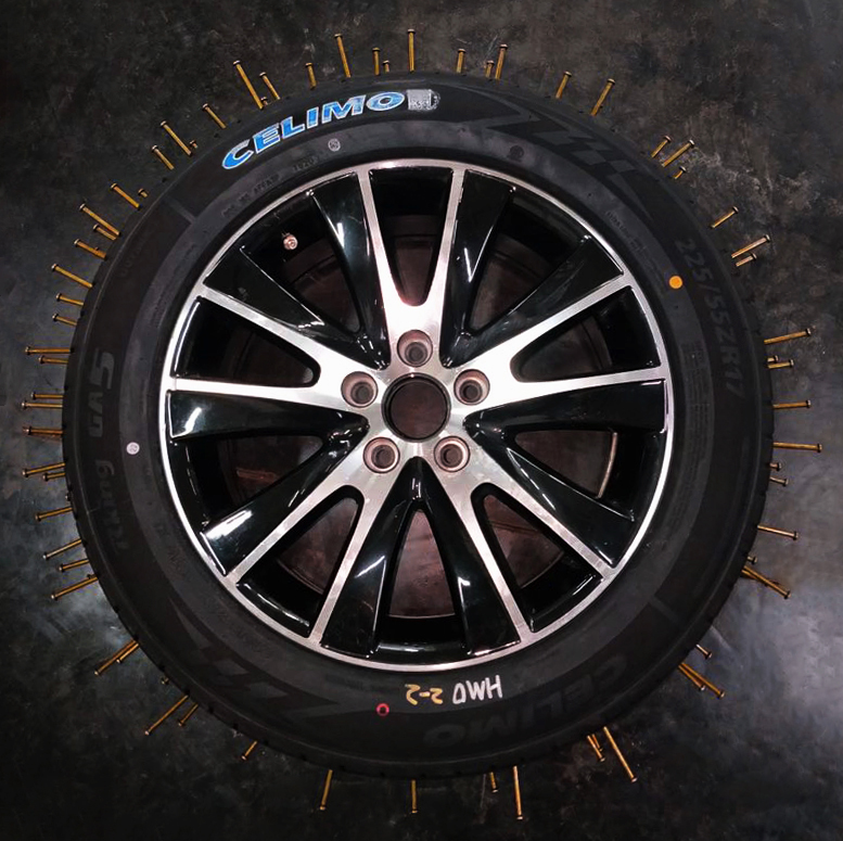 当钉子等尖锐物体被拔出时,胶料涂层又将自动聚拢在穿孔处,填充和密封好轮胎缺口处,防止气体外泄,从而实现自动修复的功能。第三方实验室数据表明,即使被100个钉子刺入轮胎胎面,千里马抗扎胎也无需补胎,当钉子全部拔出后,千里马抗扎胎仍然可以正常使用,保持良好的气密性。