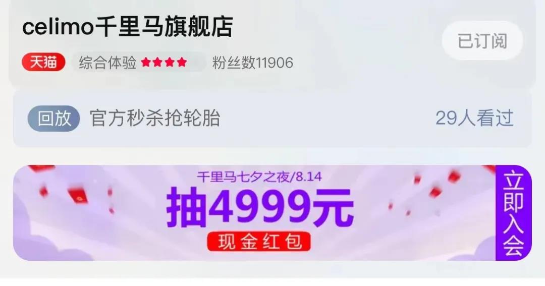 即日起至8月14日20:00点前,消费者只要关注红豆集团旗下品牌如“celimo千里马”天猫官方旗舰店,成为会员并消费(不限金额)即可获得4999元超大红包的抽取资格。