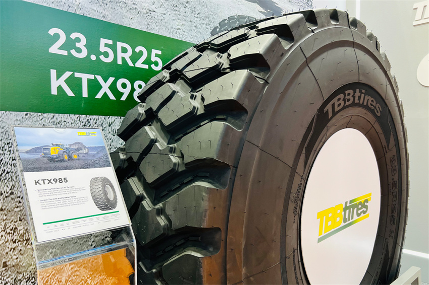 非公路轮胎展区中,喜达通TBBTIRES带来的轮式装载机轮胎KTX985,凭借其强牵引、抗切割和自清洁性能,为矿山建筑工况场景提供可靠解决方案,凸显了公司在OTR轮胎领域的专业实力。