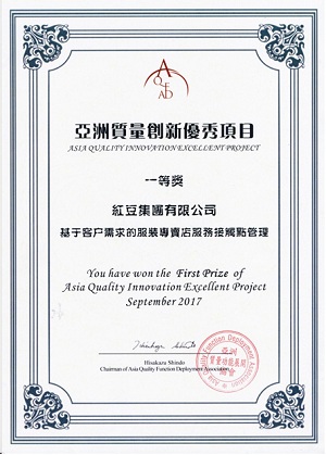 9月26日-27日,第二届亚洲质量功能展开与创新研讨会在杭州举行,红豆集团发表的“基于客户需求的连锁专卖店服务接触点管理”项目,荣获亚洲质量创新优秀项目一等奖。国家质检总局质量管理司副司长陈晓波,亚洲QFD协会会长、国际著名质量专家、日本戴明奖评审委员长新藤久等国内外知名专家学者担任本次研讨会嘉宾,现场共有200余家企业参加本次研讨会。红豆等30余家企业进入研讨会现场发表环节,经专家评审和企业答辩,红豆集团等10家企业发表的项目得到评审组高度认可,荣获一等奖。