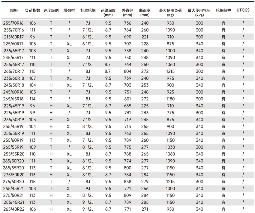 适用于冬季冰雪路面行驶的SUV轮胎