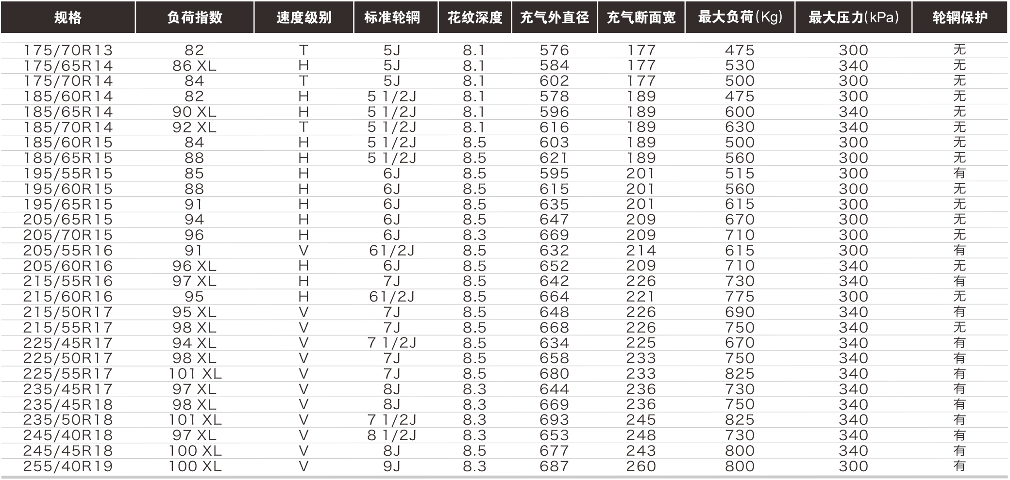 三条纵向排水沟有效防止轮胎雪地天气侧向打滑。