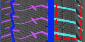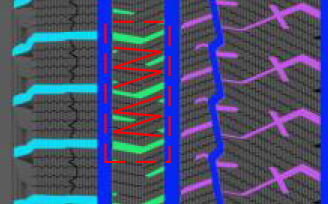在制动过程中,M形交叉花纹设计可提升对花纹块的支撑,减少蠕动,提高花纹块刚性。