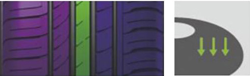 外侧宽大的胎肩花纹设计对高速转向与过弯提供足够的接地面积。